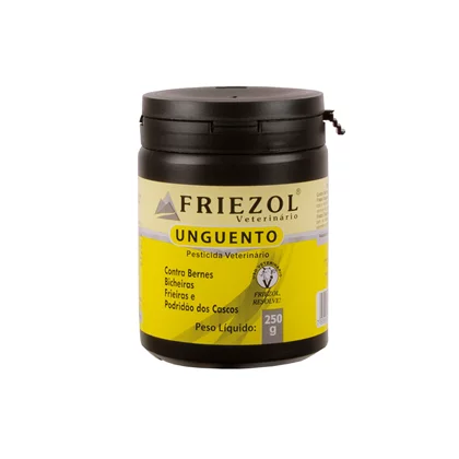O Ungüento Friezol forma uma forte camada protetora sobre o local atacado, proporcionando rápida cicatrização, evitando o aparecimento de novas larvas. Devido ao seu alto poder de aderência, o Ungüento Friezol não sai em contato com água, barro, sol e outros elementos.